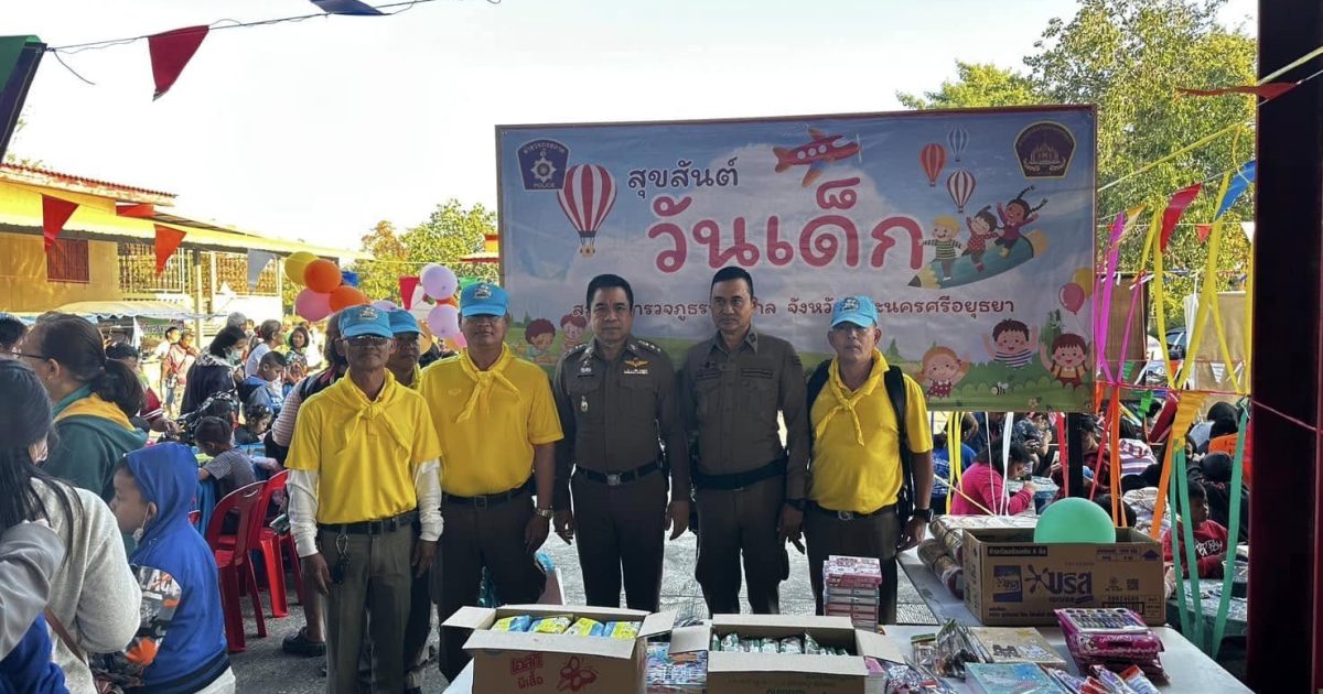 พ.ต.ต.ศักดา สมพงษ์สวป.สภ.บางบาลพร้อมกำลังเจ้าหน้าที่ตำรวจชุดชุมชนสัมพันธ์ สภ.บางบาล ว.4 แจกของโครงการวันเด็กแห่งชาติประจำปี พ.ศ.2568 ณ วัดกำแพงแก้ว ต.สะพานไทย อ.บางบาลฯ