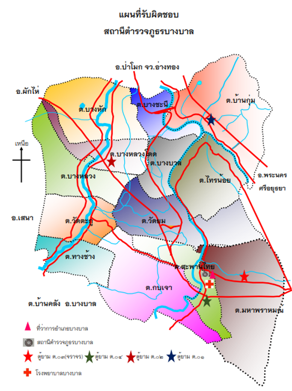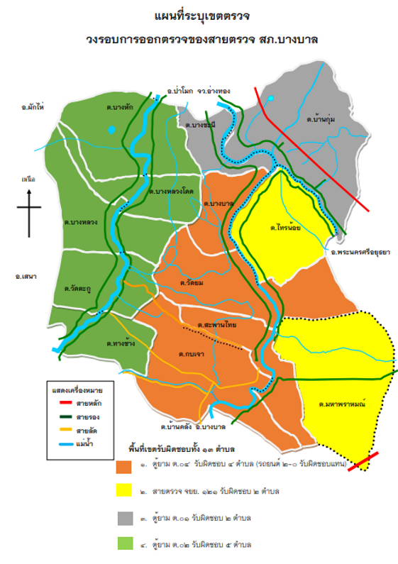1.ตำบลบางบาล 2.ตำบลไทรน้อย 3.ตำบลบางหลวงโดด